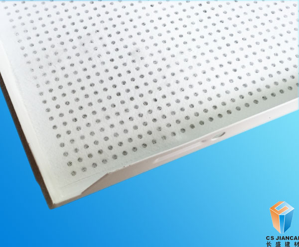 暗骨方型扣板的折邊向上,呈缺口式盒子形,并與三角龍骨及其夾嵌方式相適應,折邊部位在加工過(guò)程中有長(cháng)圓形卡口,可以較精確和穩定地嵌入A字龍骨的夾縫中。如需調換和清潔吊頂板時(shí),可用磁性吸盤(pán)或專(zhuān)用拆板器快速取板。對有吸聲要求的頂棚,可選用穿孔板或按設計規定在吊頂構造中敷設玻璃棉氈等吸 聲保溫材料。也可在穿孔板背面覆加一層吸音棉紙或黑色阻燃棉布,能夠達到一定的吸聲標準。